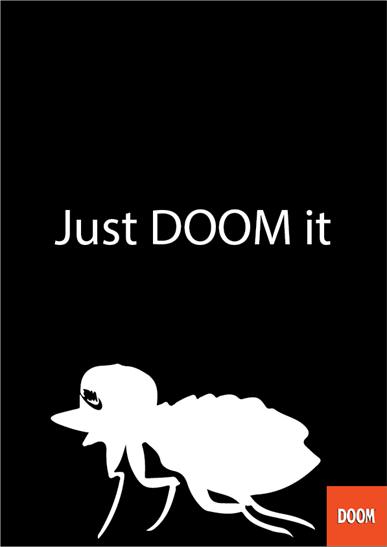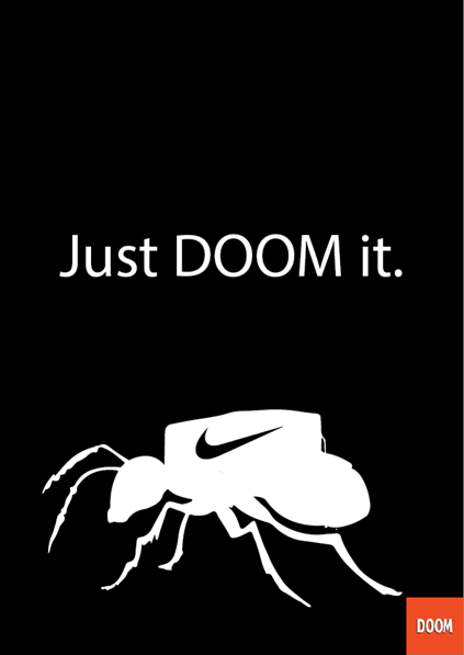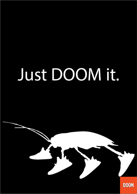 The Nike slogan sounds like it would work well with the word DOOM in it. Also, DOOM is well-known for being satirical and poking fun at the macabre nature of their product.